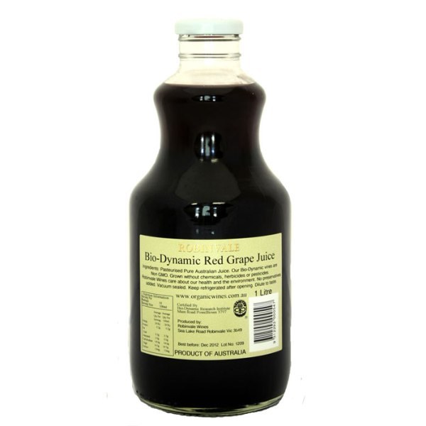Robinvale Bio-Dynamic Red Grape Juice is made from Bio-Dynamic grapes that are Non-GMC and are grown without chemicals, herbicides or pesticides. This juice is pasteurised and vaccuum sealed for freshness. It has no preservatives added. 100% pure Australian cold pressed biodynamic grape juice.